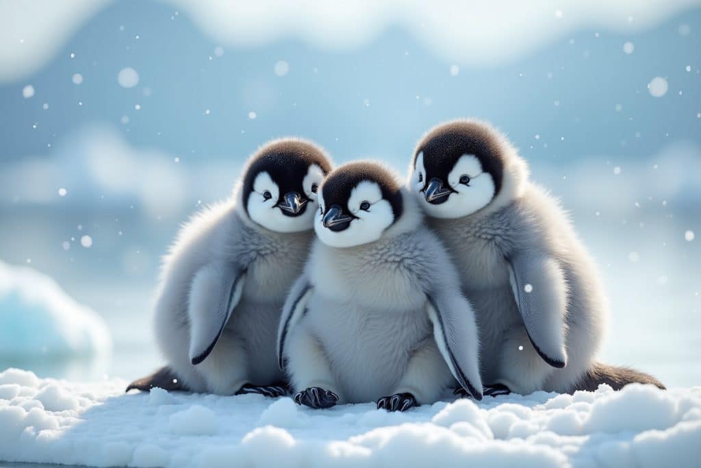 Baby-Pinguine sind mit einem dichten Daunenflaum bedeckt, der eine hervorragende Isolierung bietet. In den ersten Lebenswochen sind sie jedoch stark auf die Wärme ihrer Eltern angewiesen. Sobald sie älter sind und die Eltern zur Nahrungssuche aufbrechen, bilden sie in dichten Gruppen, sogenannten Kinderkrippen, zusammen. Durch diese Gruppierung und die gegenseitige Körperwärme können sie die extremen Temperaturen meistern.